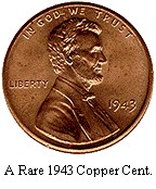 "According to the American Numismatic Association, the 1943 copper-alloy cent is one of the most idealized and potentially one of the most sought-after items in American numismatics. Nearly all circulating pennies at that time were struck in zinc-coated steel because copper and nickel were needed for the Allied war effort.