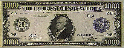 $1000 Federal Reserve Notes Series 1918 Blue Seal |