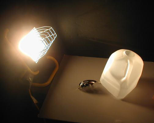 Here is another way of using the jug - here I use a halogen contractor's light to provide the lighting, and the jug to diffuse it. The subject is a serving spoon, I wanted to get the hallmark on the handle.