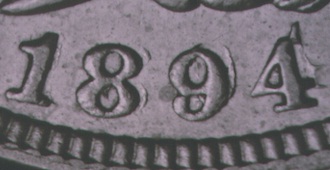 Repunched dates can be minor, or highly evident. This 1894 Indian cent will fetch prices up to $4500, compared to $150 for a normal coin.