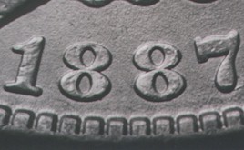 An overdate is simply one date that was punched into a die over a different date. This 1887/6-O Morgan dollar will bring as much as $7500.