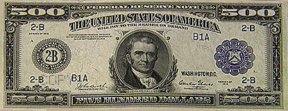$500 Federal Reserve Notes Series 1918 Blue Seal |